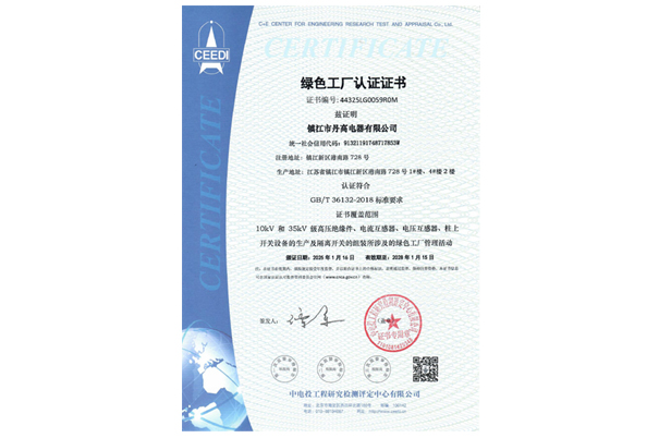 綠色工廠認證證書